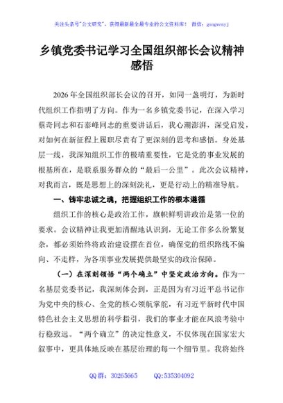 / 乡镇党委书记学习全国组织部长会议精神感悟