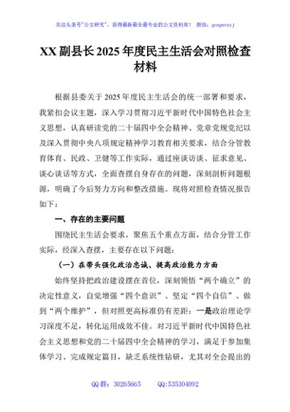 / XX副县长2025年度民主生活会对照检查材料