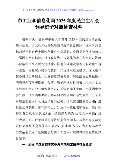 / 市工业和信息化局2025年度民主生活会领导班子对照检查材料