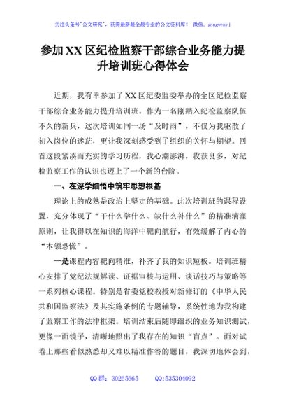 / 参加XX区纪检监察干部综合业务能力提升培训班心得体会