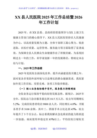 / XX县人民医院2025年工作总结暨2026年工作计划