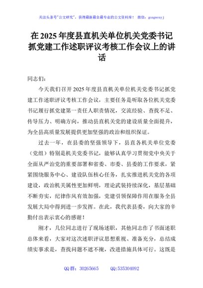 / 在2025年度县直机关单位机关党委书记抓党建工作述职评议考核工作会议上的讲话