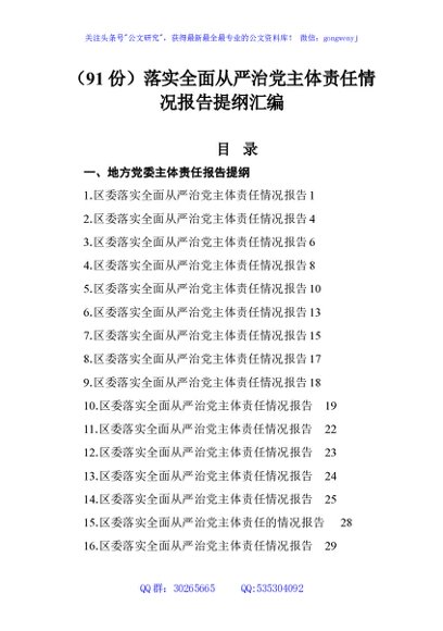 / (91份)落实全面从严治党主体责任情况报告提纲汇编