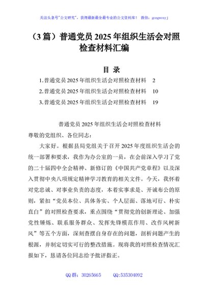 / (3篇)普通党员2025年组织生活会对照检查材料汇编