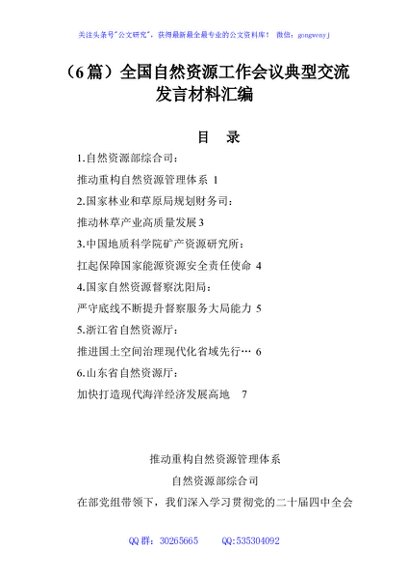 / (6篇)全国自然资源工作会议典型交流发言材料汇编