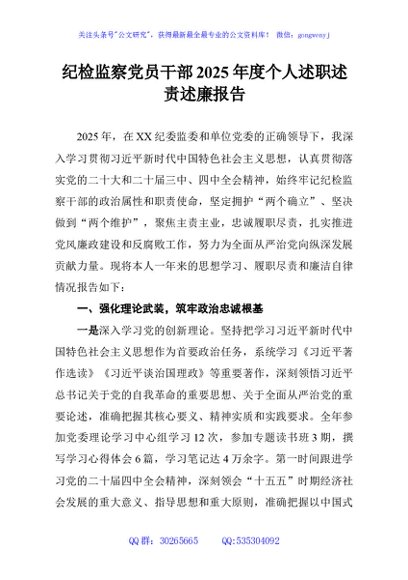 / 纪检监察党员干部2025年度个人述职述责述廉报告