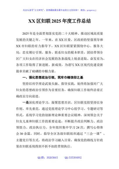 / XX区妇联2025年度工作总结