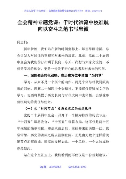 全会精神专题党课:于时代洪流中校准航向以奋斗之笔书写忠诚