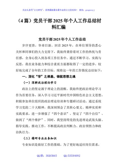 / (4篇)党员干部2025年个人工作总结材料汇编