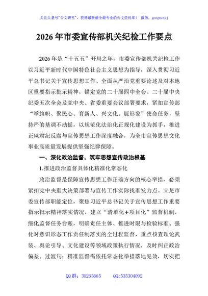 / 2026年市委宣传部机关纪检工作要点