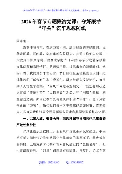 / 2026年春节专题廉洁党课:守好廉洁“年关”筑牢思想防线