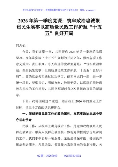 / 2026年第一季度党课:筑牢政治忠诚聚焦民生实事以高质量民政工作护航“十五五”良好开局