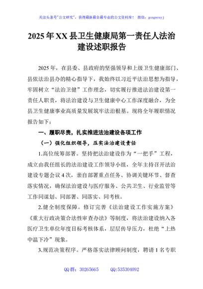 / 2025年XX县卫生健康局第一责任人法治建设述职报告