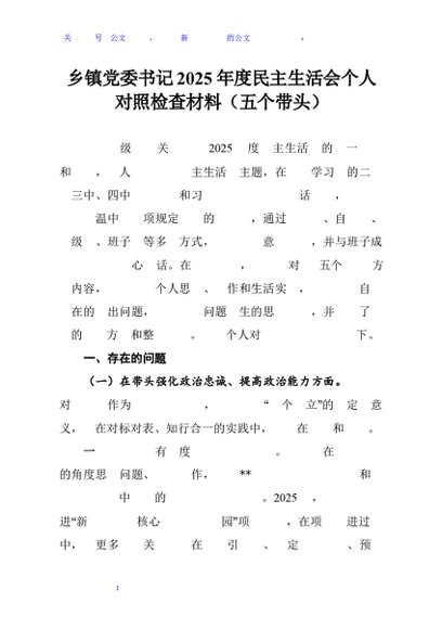 / 乡镇党委书记2025年度民主生活会个人对照检查材料(五个带头)