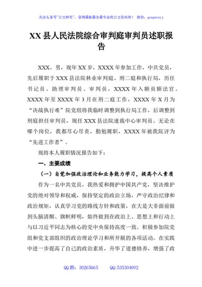 / XX县人民法院综合审判庭审判员述职报告