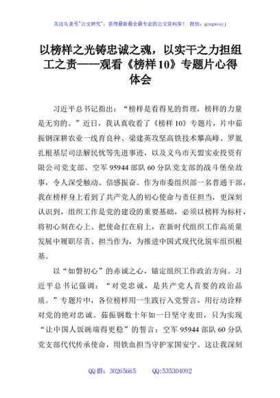 / 以榜样之光铸忠诚之魂,以实干之力担组工之责——观看《榜样10》专题片心得体会
