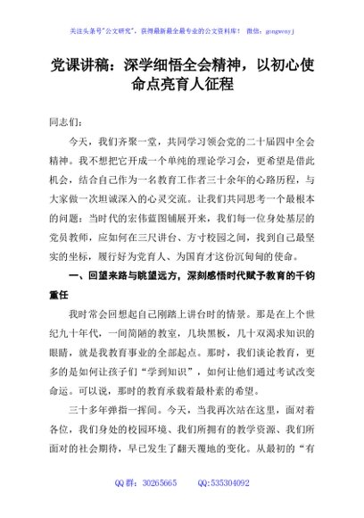 / 党课讲稿:深学细悟全会精神,以初心使命点亮育人征程