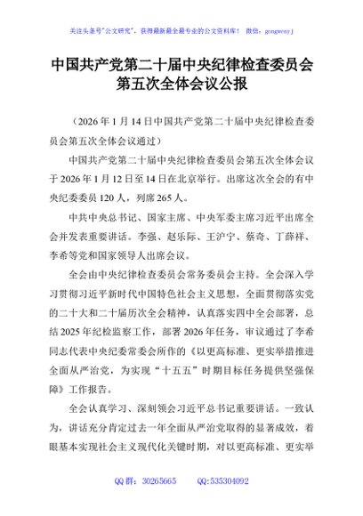/ 中国共产党第二十届中央纪律检查委员会第五次全体会议公报