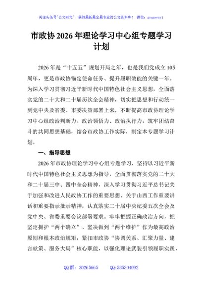 / 市政协2026年理论学习中心组专题学习计划
