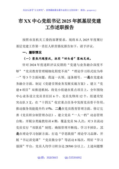 / 市XX中心党组书记2025年抓基层党建工作述职报告