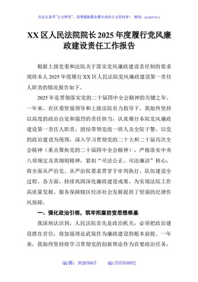 / XX区人民法院院长2025年度履行党风廉政建设责任工作报告