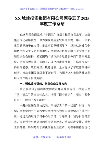 / XX城建投资集团有限公司领导班子2025年度工作总结