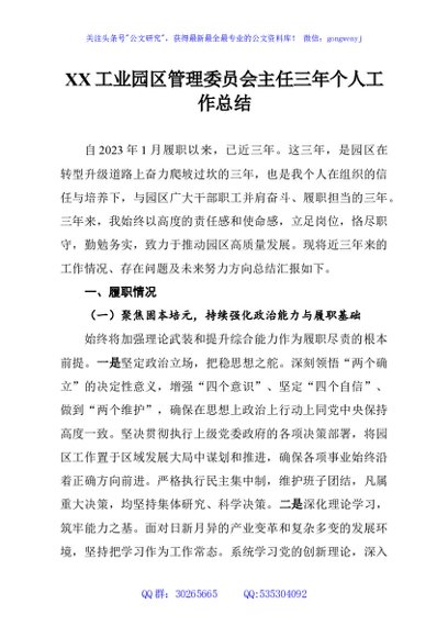 / XX工业园区管理委员会主任三年个人工作总结