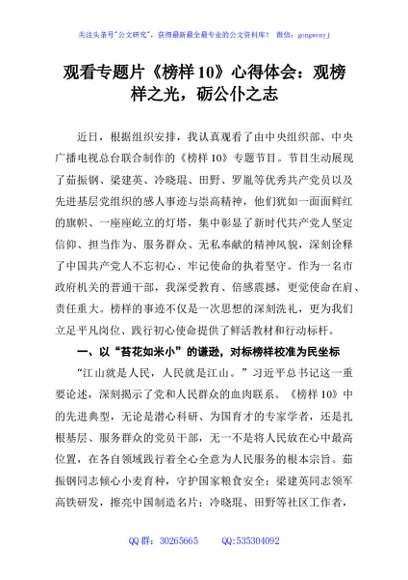 观看专题片《榜样10》心得体会:观榜样之光,砺公仆之志
