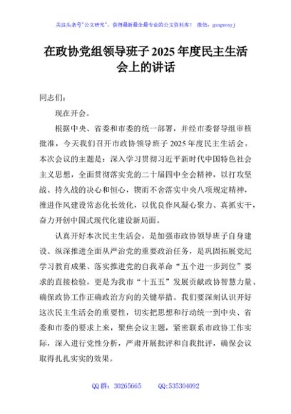 / 在政协党组领导班子2025年度民主生活会上的讲话