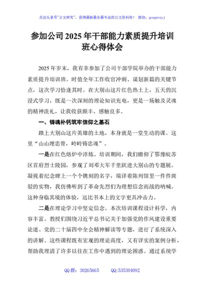 / 参加公司2025年干部能力素质提升培训班心得体会