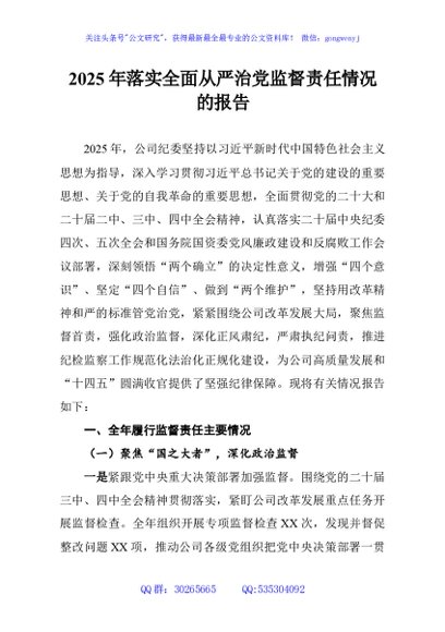 / 2025年落实全面从严治党监督责任情况的报告