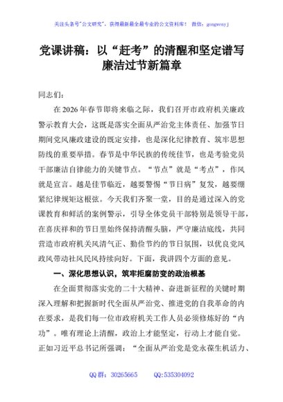 / 党课讲稿:以“赶考”的清醒和坚定谱写廉洁过节新篇章