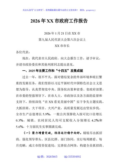 / 2026年XX市政府工作报告