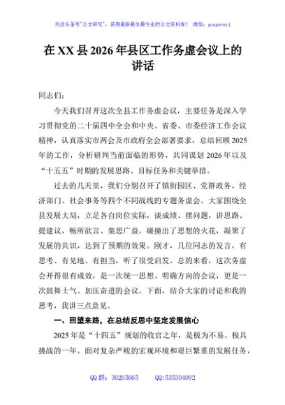 / 在XX县2026年县区工作务虚会议上的讲话