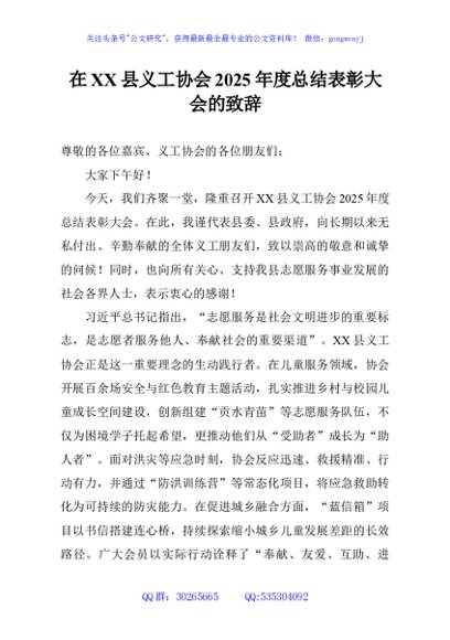 / 在XX县义工协会2025年度总结表彰大会的致辞