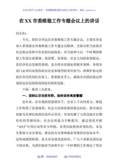 / 在XX市委维稳工作专题会议上的讲话