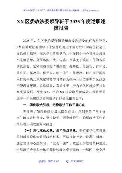 / XX区委政法委领导班子2025年度述职述廉报告