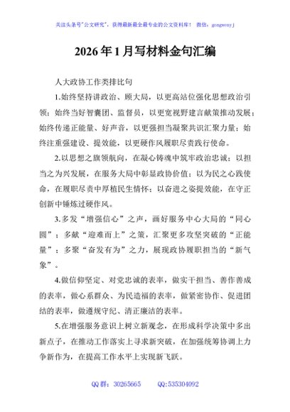 / 2026年1月写材料金句汇编