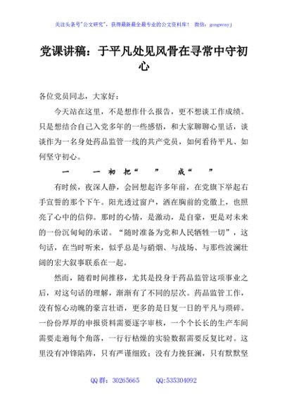 / 党课讲稿:于平凡处见风骨在寻常中守初心
