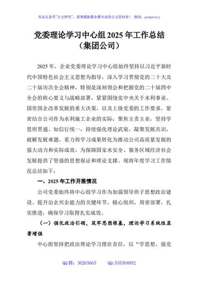 / 党委理论学习中心组2025年工作总结(集团公司)