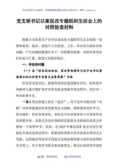 / 党支部书记以案促改专题组织生活会上的对照检查材料