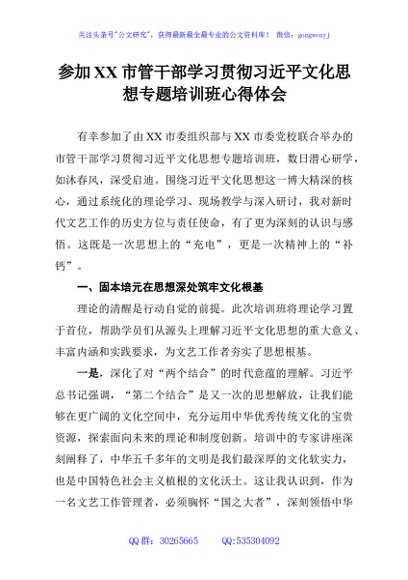 参加XX市管干部学习贯彻习近平文化思想专题培训班心得体会