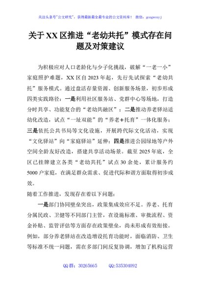 / 关于XX区推进“老幼共托”模式存在问题及对策建议