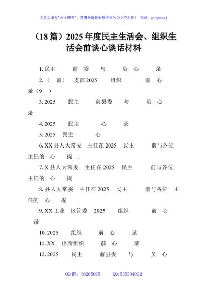 / (18篇)2025年度民主生活会、组织生活会前谈心谈话材料