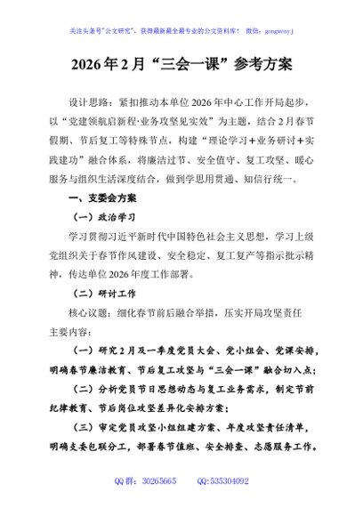 / 2026年2月“三会一课”参考方案