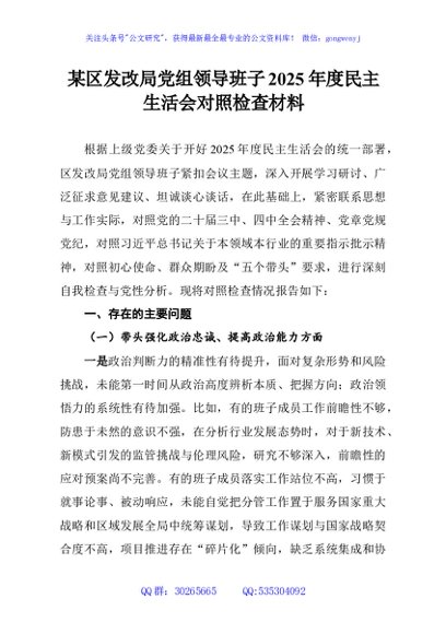 / 某区发改局党组领导班子2025年度民主生活会对照检查材料