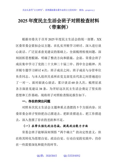 / 2025年度民主生活会班子对照检查材料(带案例)