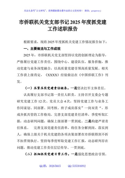 / 市侨联机关党支部书记2025年度抓党建工作述职报告