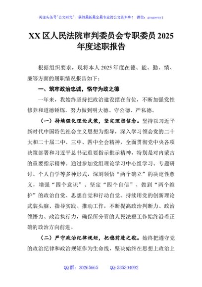 / XX区人民法院审判委员会专职委员2025年度述职报告
