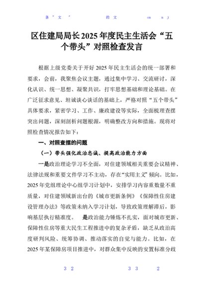 / 区住建局局长2025年度民主生活会“五个带头”对照检查发言